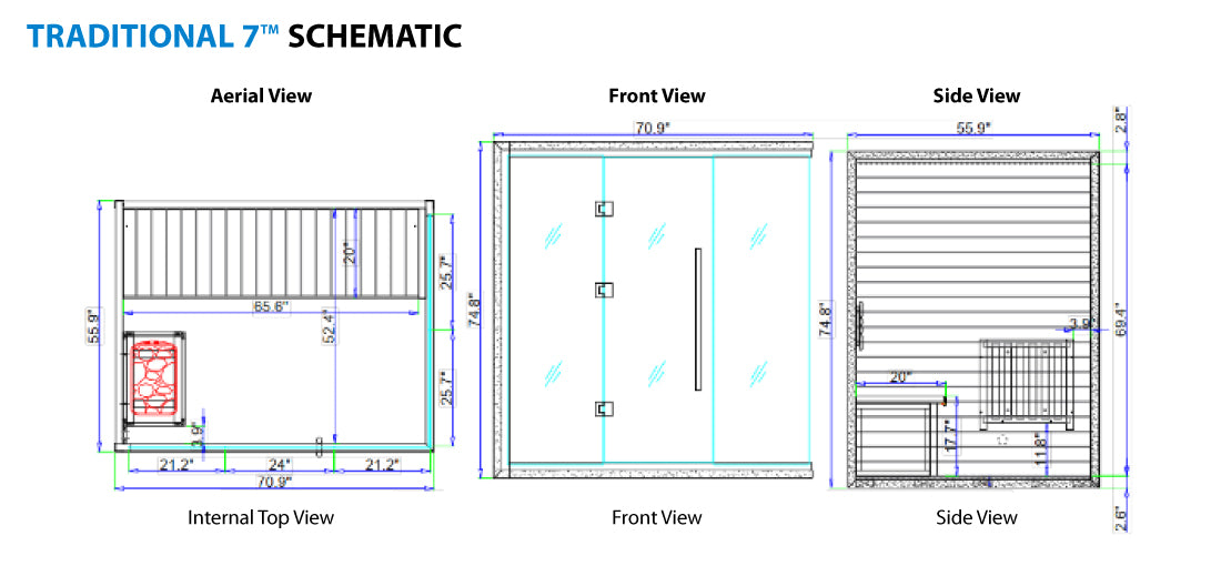 The Medical Saunas Traditional 7™ is expertly crafted to provide a luxurious and health-enhancing experience. With a perfect balance of traditional sauna customs and modern technology, this model can comfortably accommodate 3-4 individuals, making it ideal for both intimate and social sessions for families or close friends.