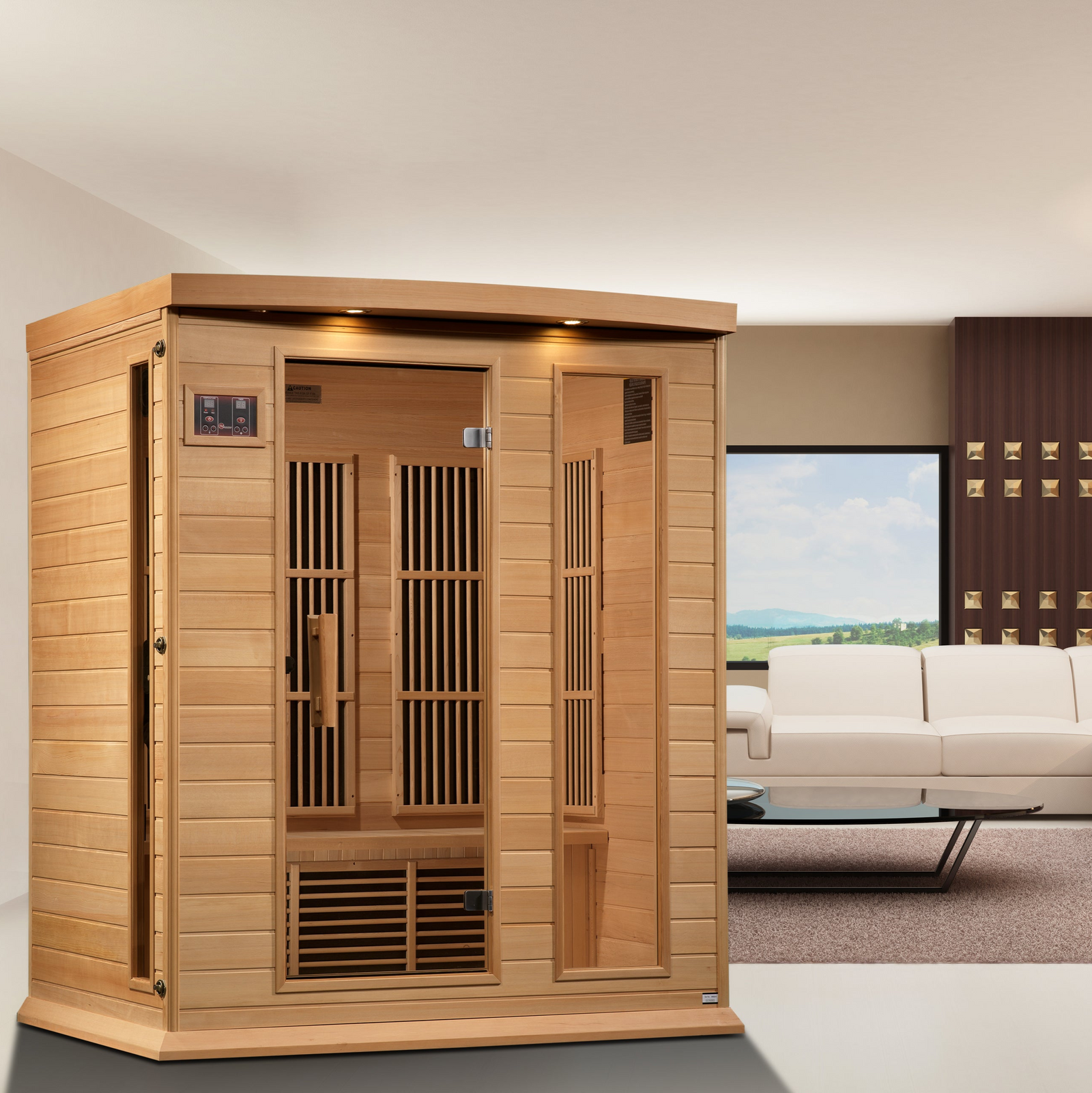 Maxxus Saunas are constructed of Canadian Reforested Hemlock Wood. These sauna products feature Low EMF heating panels, FM radio with MP3 Aux and Bluetooth capability, privacy glass and Chromotherapy Lighting.
