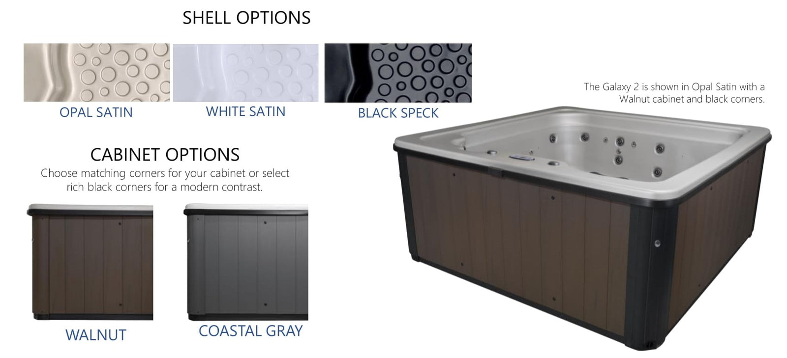 The Galaxy collection of hot tubs offers ample room to stretch out and relax. Whether you choose the lounge seat or captain's chair you'll be sure to find the hydrotherapy you need to relax, recover and re-energize.